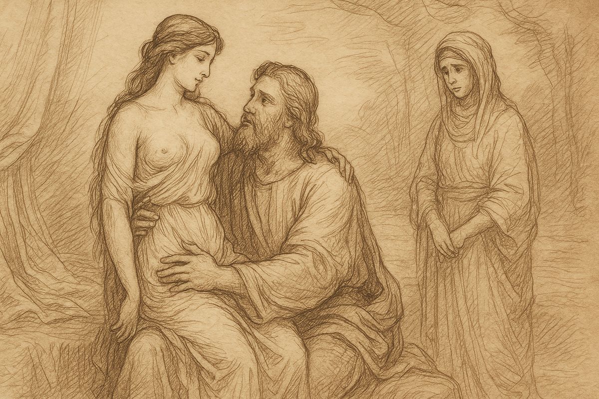 Další velký příběh Genesis ukazuje mnohoženství už ne jako společenský zvyk, ale jako osobní drama, v němž se mísí láska, klam i Boží tajemství. Jákob, vnuk Abrahamův, přichází do domu svého strýce Lábana, kde se setkává s jeho mladší dcerou Ráchel.