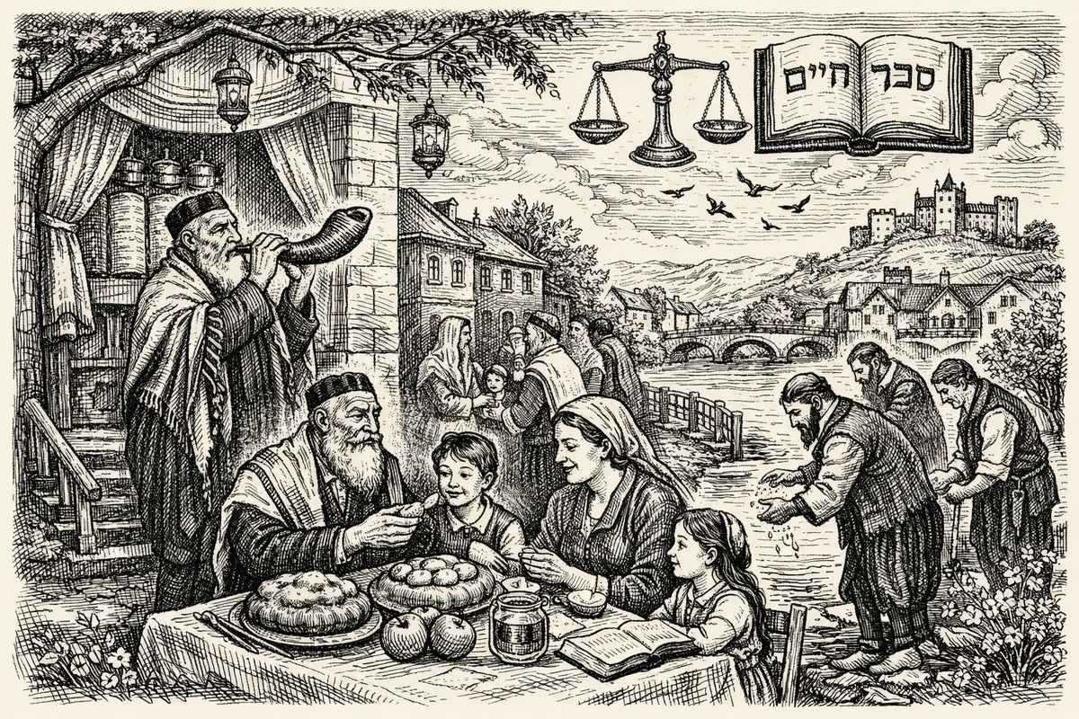 Rabínská literatura popisuje, že v těchto dnech je otevřena „Kniha života“ a „Kniha smrti“. Nejde o doslovnou účetní knihu, ale o obraz hlubokého morálního bilancování. V Talmudu (Roš ha-šana 16b) se píše, že „v den Roš ha-šana procházejí všechny bytosti před Bohem jako ovce před pastýřem“. Každý člověk je viděn jednotlivě, se svými činy, úmysly i možnostmi.