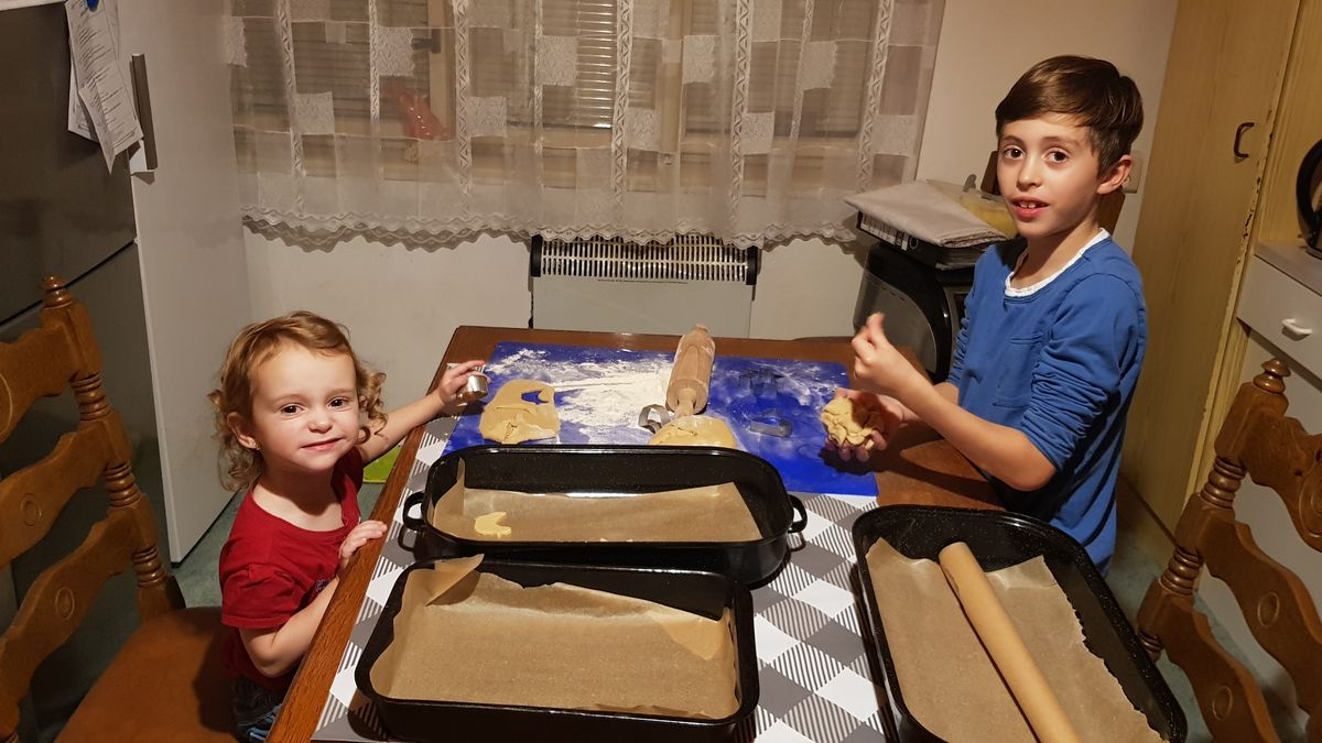 Tak my, ještě než je první advent, začneme s perníčky. Nejprve těsto a to necháme dvacet čtyři hodin uležet. Pak děti valí a valí, vykrajují a pečeme. Po několika dnech začneme i s lineckým těstem. Vanilkové rohlíčky nesmí chybět. Poté nepečené (kuličky) děti rádi tvarují. Takže doma neskutečný bordel, ale půl hodiny neuvěřitelně hodné děti. Tak cukroví máme.