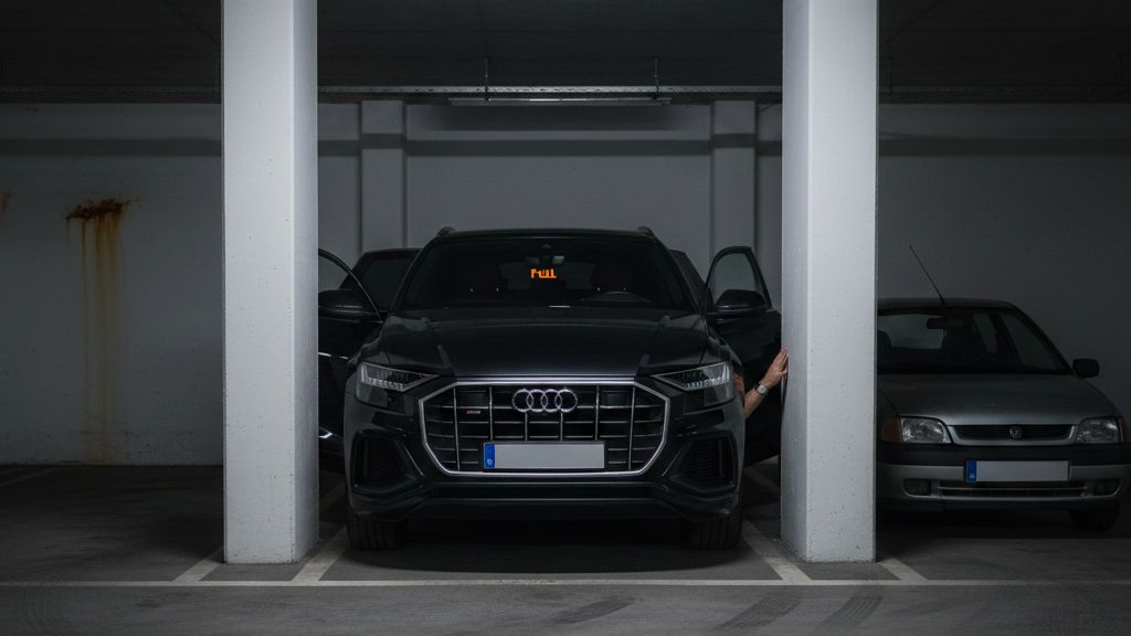 - Realita 2026: Průměrné SUV (např. Škoda Kodiaq nebo VW Tiguan) má šířku bez zrcátek cca 1,85–1,90 m. Se zrcátky je to 2,1 m. Pokud řidič zaparkuje milimetrově přesně na střed, zbývá mu na otevření dveří pouhých 20 cm, což je hluboko pod ergonomickým minimem pro bezpečné vystoupení.