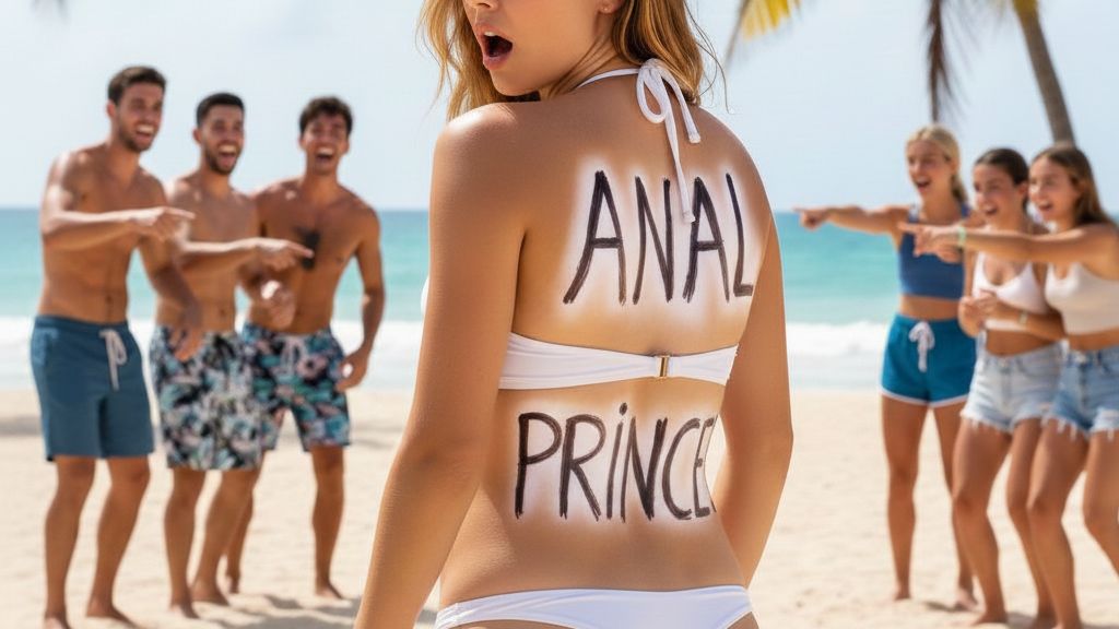 Vůbec jsem netušila, že zatímco jsem v říši snů, nade mnou stojí skupinka mých „přátel“ s černým nesmývatelným fixem v ruce. Lukáš, hlavní iniciátor, se později chlubil, že mu to trvalo patnáct minut, protože se snažil o „ozdobné písmo“. Přes celá moje záda, od lopatek až po kříž, vyvedli obří nápis: ANAL PRINCESS (anální princezna).