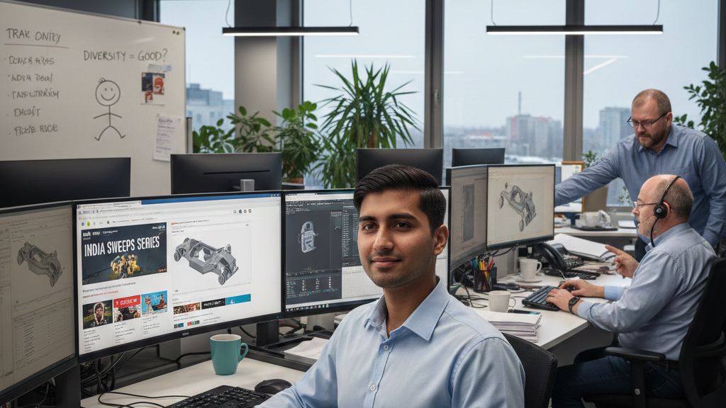 V naší konstrukční kanceláři se dřív řešily jen milimetry a termíny. Pak ale management zatoužil po globálním lesku a HR nám nadělilo Rajeshe. Výsledek? My v potu tváře doháníme resty a on vedle nás spokojeně pobírá plat za sledování zpráv, protože anglicky se v tomhle tlaku nikomu komunikovat nechce.