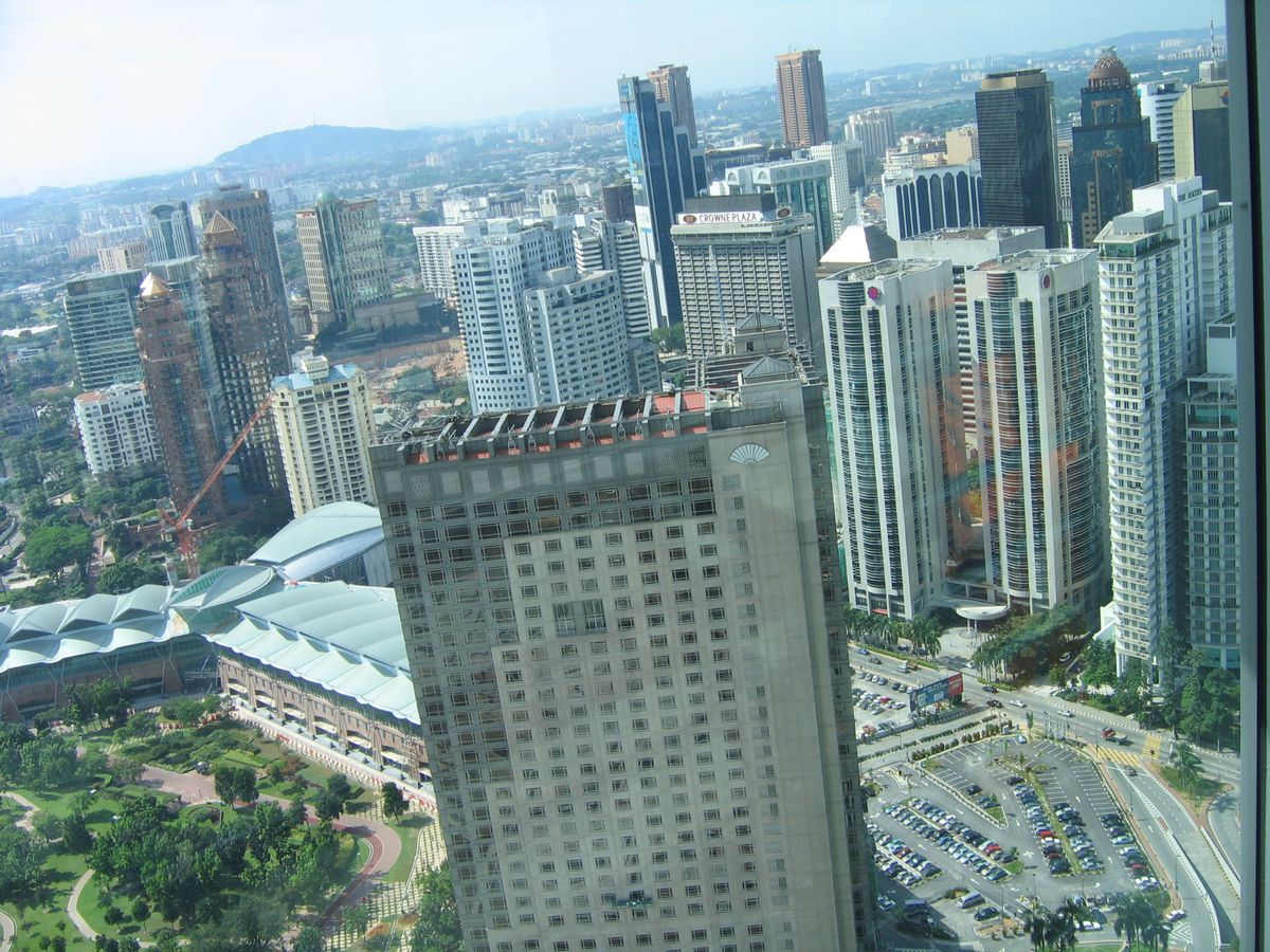 Ráno jsem lehce před 9 vypadl na nadzemku, abych se stihl podívat na Petronas Towers ještě před check-outem, což se mi v pohodě povedlo. Věže jsou pěkné, celé z nerezu a skla, nablýskané, a návštěva Sky Bridge, spojujícího obě věže ve 170 m (41. a 42. poschodí) je výborně organizována. Turistům čekajícím na prohlídku je prmítnut film o stavgbě budovy. Jestli jsem to správně pochopil, veškerý beton byl lit kontinuálně, aby se zabránilo „studeným“ spojům.
