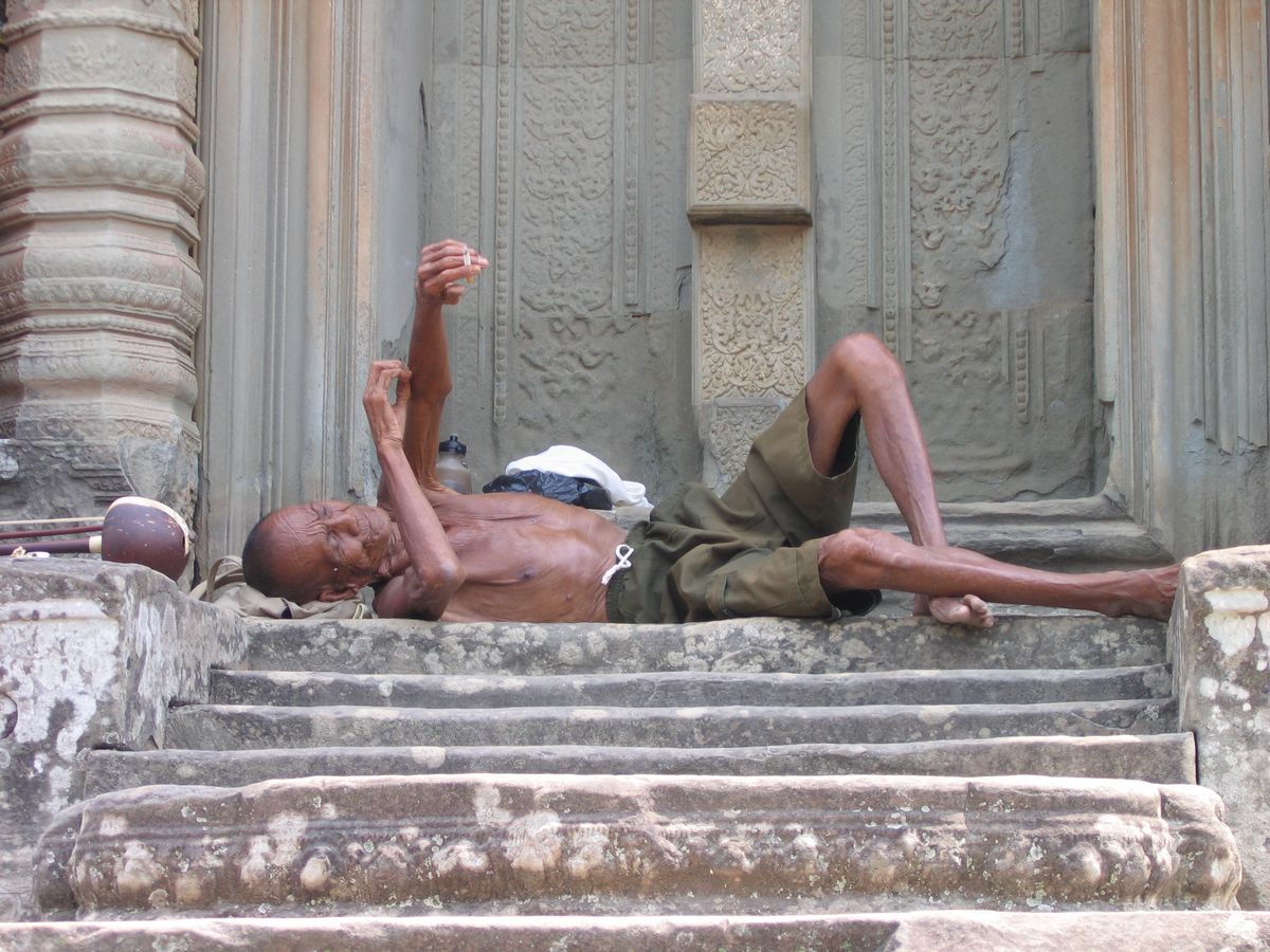 Angor Vat - Strkat lidem objektiv do obličeje se mi příčí, ale na starého spícího mnicha jsem si troufl.