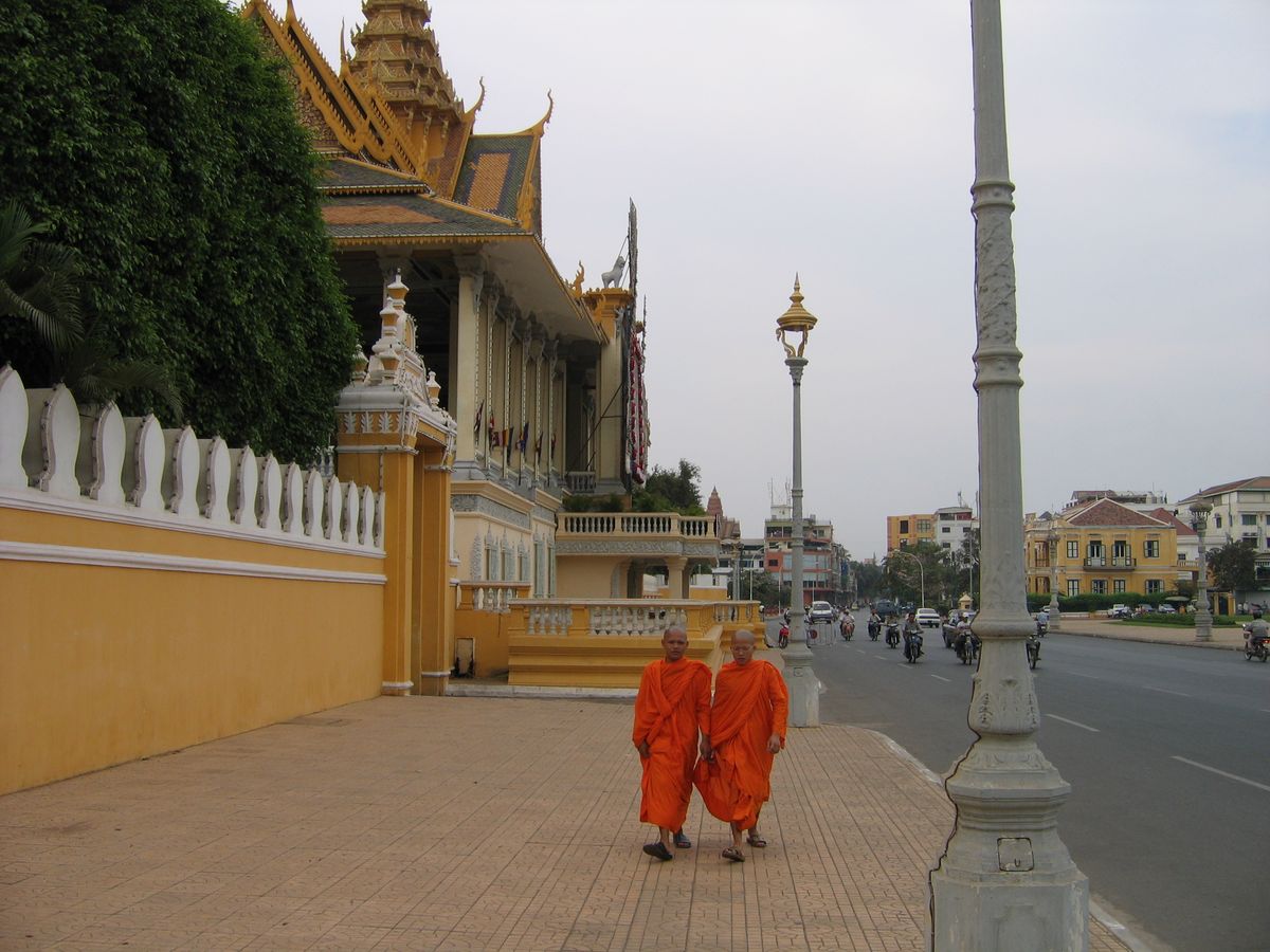 Není divu, že když mě ráno vzbudil pikolík z GH, nechtělo se mi vůbec vstávat. Autobus přijel ještě když jsem snídal, a tak jsem bleskově sbalil a vypadl. Velký autobus do Phnom Penhu byl skoro z 1/3 plný gringošů, kterých je tady snad více než v BKK. Jsem z toho dočista zaskočen. Phnom Penh je město pěkné jak širokými bulváry tak i špinavými smradlavými a barevnými tržišti. Kdyby se měla vyspělost země hodnotit podle hl. města, nikdy bych si netroufl tvrdit, že Kambodža je nejchudší zemí v JV Asii. I když vlastně ve srovnání s Jakartou či Kuala L. a BKK vlastně ano.