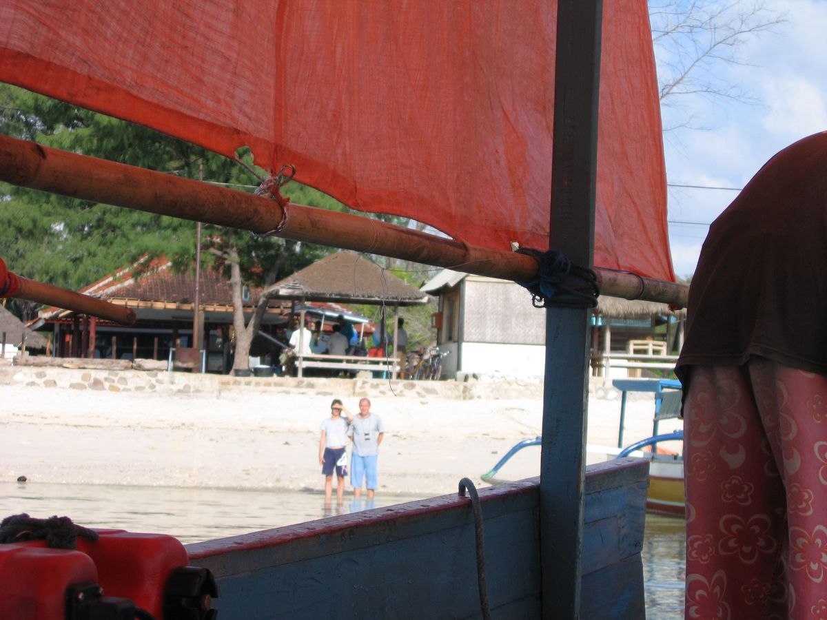 To bylo tak. Ráno vstávačka v 6.00 kvůli východu slunce nad Gunung Rinjani, který se nekonal díky mrakům, takže vyspávání do 7.00, balení a odchod na člun z Gili Meno. Jdeme všichni dříve, abychom stíhali kafíčko a v 8.00 se po loučení se slzami v očích naloďují na člun do Bengsalu, kde po chvíli čekání nastupuji do busu do Mataramu, odkud po cca 1 hod. čekání odjíždíme do Lembaru. Tam nás rychle nahánějí na trajekt, který však odplouvá až za 1/2 hodiny!