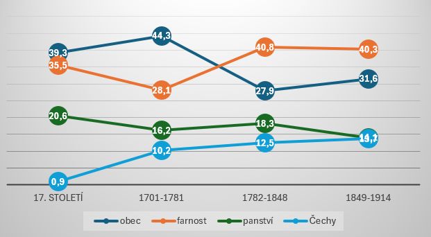 Podíl ženichů z jiných obcí stejného panství zůstal přibližně stejný a činil 18,3 %.