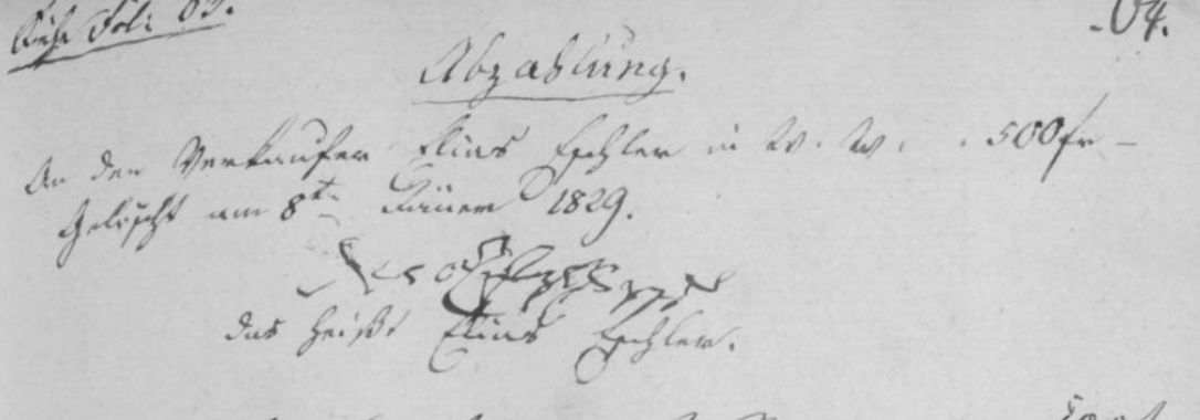 Dalších citací složitých souvětí čtenáře raději ušetřím a přeformuluji je do srozumitelnějšího současného jazyka: Pokud gubernium oddělení těchto pozemků povolí, má syn Josef otci nebo jeho dědicům zaplatit 200 zlatých vídeňské měny. Hned po schválení měl Josef jako závdavek složit 50 zlatých a zbytek pak doplatit roční splátkou 20 zlatých (vše opět vídeňské měny; bylo krátce po státním bankrotu a měny byly dvě - konvenční a vídeňská; problematiku v článku pro složitost necháme stranou).