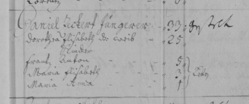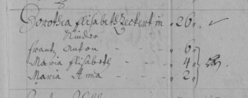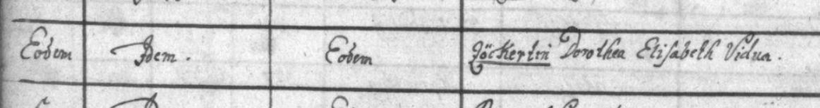 Kdo umí číst staré písmo, vidí, že v soupisu není Dorothea Elisabeth zmíněna jménem, ale označena jako „vdova po Danieli Zeckertovi“. V této době to bylo běžné, psal jsem o tom v tomto článku: