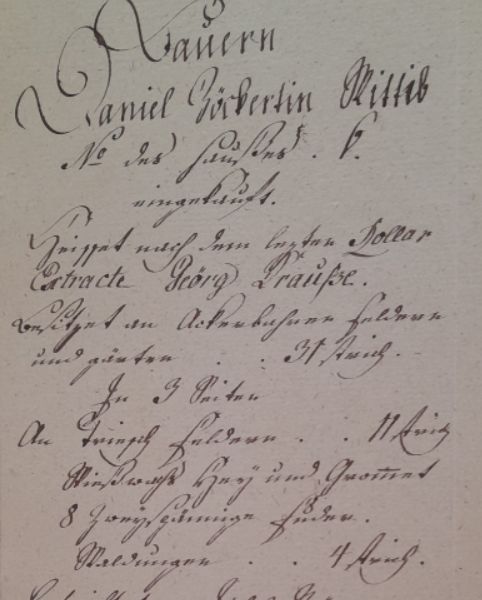 Na začátku července 1750 byl tedy statek prodán. Novému majiteli Danielovi bylo 26 let, ženě Dorotě Elisabeth 18. Na statku dále zůstali výměnkáři: 58letý Christof (nevlastní děda Dorothey Elisabeth) a 71letá Elisabeth Zeckertovi (vlastní babička), která ale zemřela o tři měsíce později.