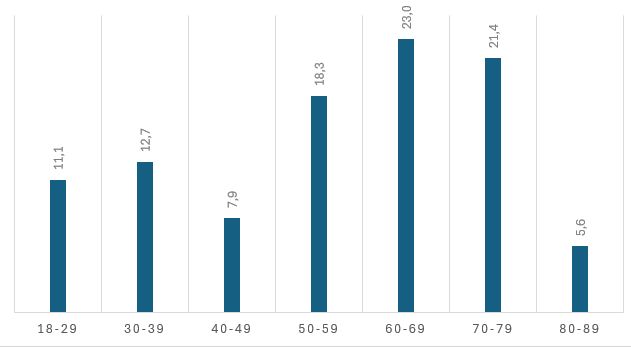 Graf podle věkových skupin pro toto období vypadá takto: