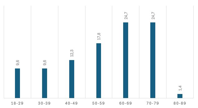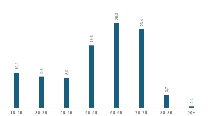 Pokud bychom výše uvedené grafy dali do jednoho, pak by věkové skupiny vypadaly takto: