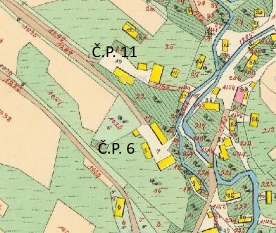 Statky čp. 6 a 11 na mapě Stabilního katastru v roce 1843