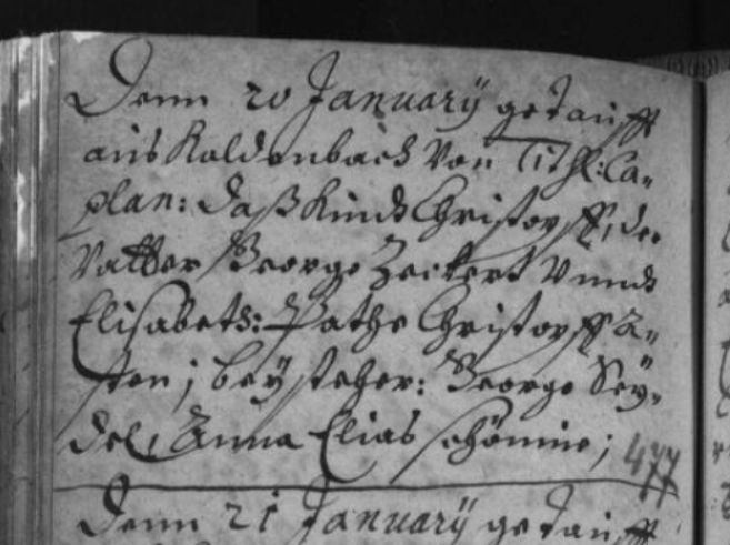 Křest Christofa Zeckerta, 20. ledna 1692.