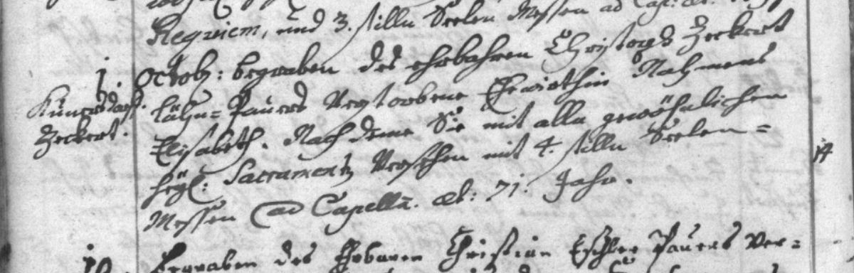 Pohřeb Elisabeth Zeckertové, 1. října 1750.