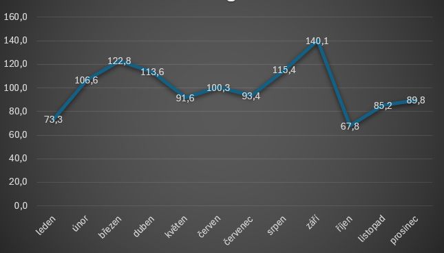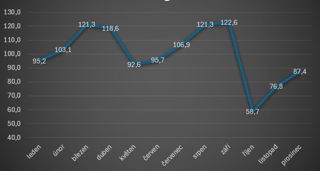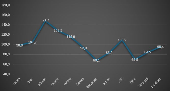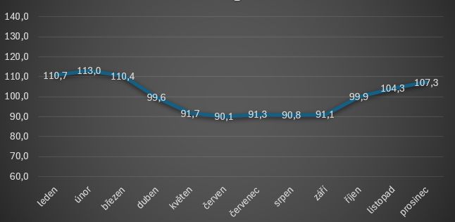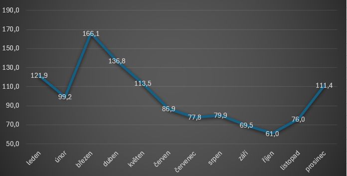 Křivka po měsících v průběhu roku (v letech 2011-2021) vypadá takto: