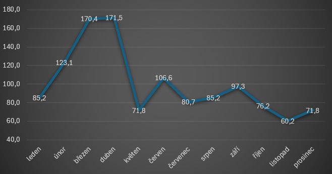 Březen a duben zůstaly i nadále velmi nebezpečnými měsíci, ale na prvních dvou místech je vystřídaly měsíce pozdního léta - srpen a září (vysvětlíme si níže); nad průměrem stále zůstal i únor.