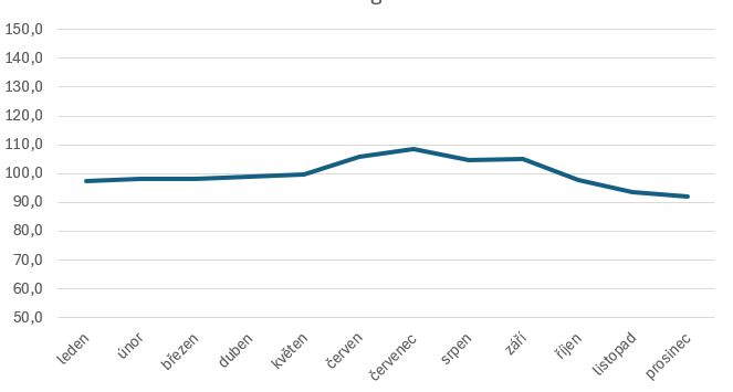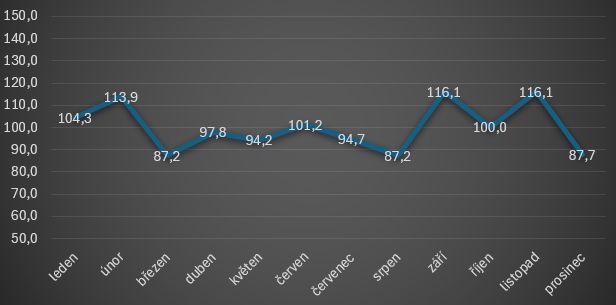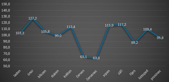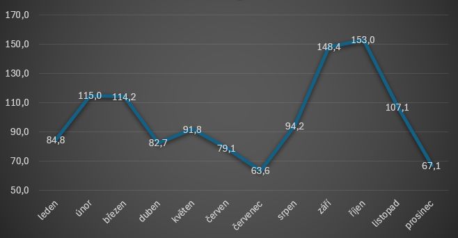 Naopak nejméně dětí se rodilo v červenci a červnu - 63, resp. 65,1 % oproti průměrnému měsíci.