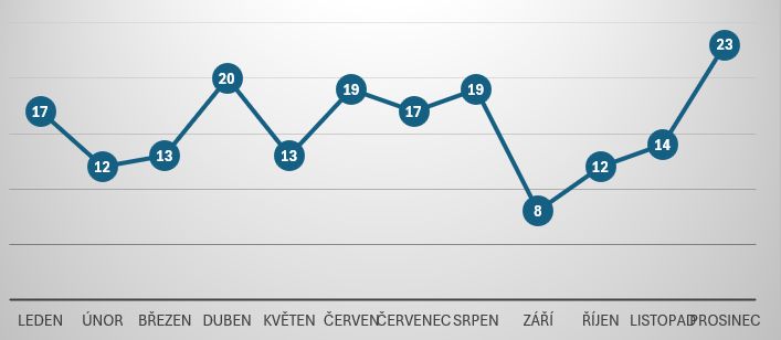 Výše jsme si řekli měsíční počty zesnulých ve farnosti Česká Kamenice - v letních měsících roku 1771 to bylo od 17 do 19 zesnulých, v září jen 8, v říjnu a listopadu 12 a 14. V prosinci již 23!