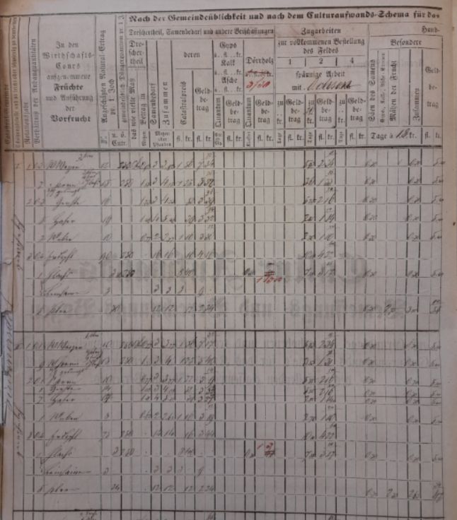 Stabilní katastr - „Šetření obvyklých nákladů na zemědělské hospodaření“.