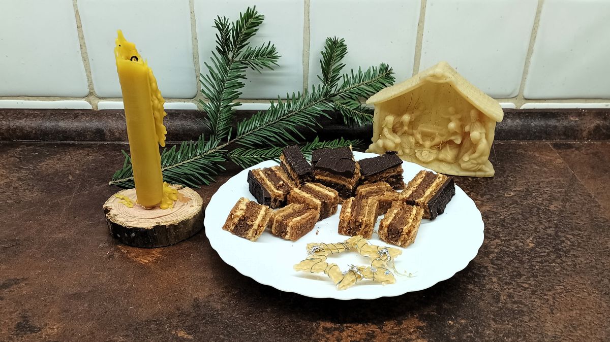 Základem pro Vánoční nebeské řezy je těsto z vlašských ořechů – stejné jako pro Nebe v hubě