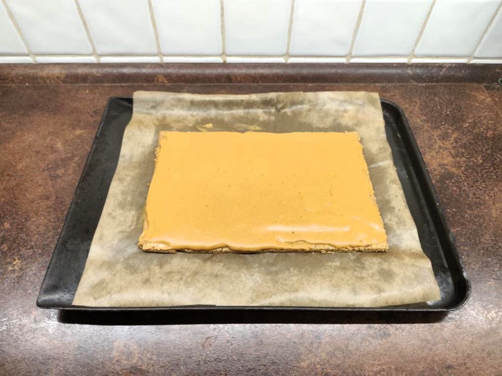 Promazání prvního korpusu karamelovým krémem ze Salka