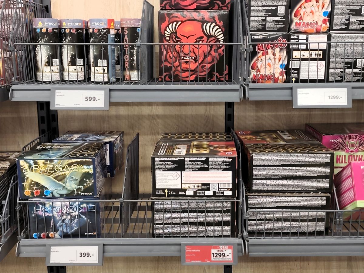 Zábavní pyrotechnika nabízená před silvestrovskými oslavami v supermarketech