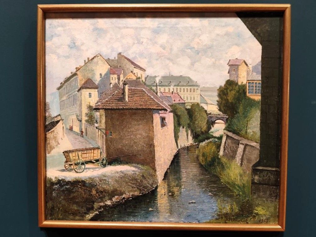 Zde následoval zlatý hřeb loňského silvestrovského výletu. Po zaplacení vstupného jsme se dvě hodiny věnovali prohlídce výstavy VLTAVA slavná & splavná. Na této výstavě bylo vidět více jak čtyři sta exponátů. Minulý čas je ve vztahu na místě, jelikož končila 4. ledna. Ke spatření byly nejen obrazy a sochy inspirované ikonickou českou řekou, ale i literární památky a rozličné archivní dokumenty, jakož i přírodní památky, jako jsou jedinečné vltavíny a různá technická díla spojená s Vltavou. Mezi exponáty pravděpodobně převládaly obrazy. K jejich autorům mj. patřili Egon Schiele, Jakub Schikaneder, Bohumil Havránek nebo Oskar Kokoschka.