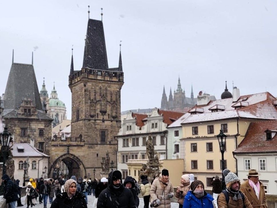 I když preferujeme výlety do lokalit, které nejsou turisticky exponované, letos došlo na silvestrovskou Prahu. Tento záměr v nás zrál již delší dobu, až letos uzrál. Rozhodnutí zásadním způsobem ovlivnil náš zájem navštívit v Jízdárně Pražského hradu výstavu VLTAVA slavná & splavná, která zde probíhala od 5. září 2025 do 4. ledna 2026 a mimo jiné připomínala 150. výročí od prvního uvedení symfonické básně Bedřicha Smetany Vltava. Takže v průběhu přípravy silvestrovského výletu nám k její návštěvě již zbývalo několik dní.