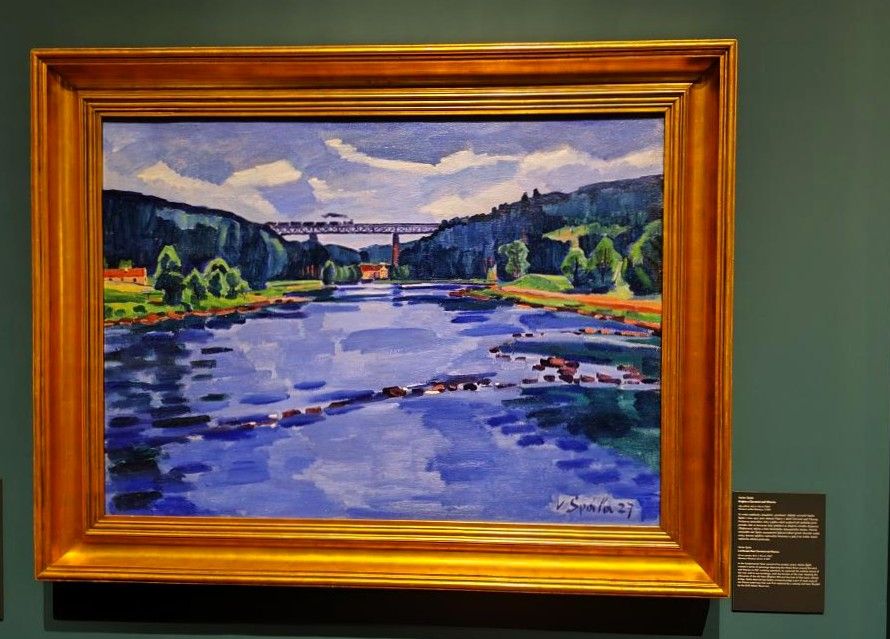 Mě osobně zde nejvíce oslovily tři obrazy od Václava Špály zachycující různé motivy krajiny v okolí Červené nad Vltavou. Tuto obec bychom dnes již marně hledali, jelikož ji zaplavila Orlická přehrada. Tyto tři vystavené obrazy spadají do Špálova modrého období, které představuje vrchol jeho tvorby při malování přírody. Kromě vlastního uměleckého zážitku Špálovy obrazy seznámily návštěvníky s tím, jak vypadala krajina na březích Vltavy v okolí zaniklé obce před vybudováním Orlické přehrady. Pravděpodobně ze stejného důvodu mne zaujal i obraz Jana Minaříka s názvem Staré ústí Botiče, který rovněž zachycuje zašlé časy naší historie.