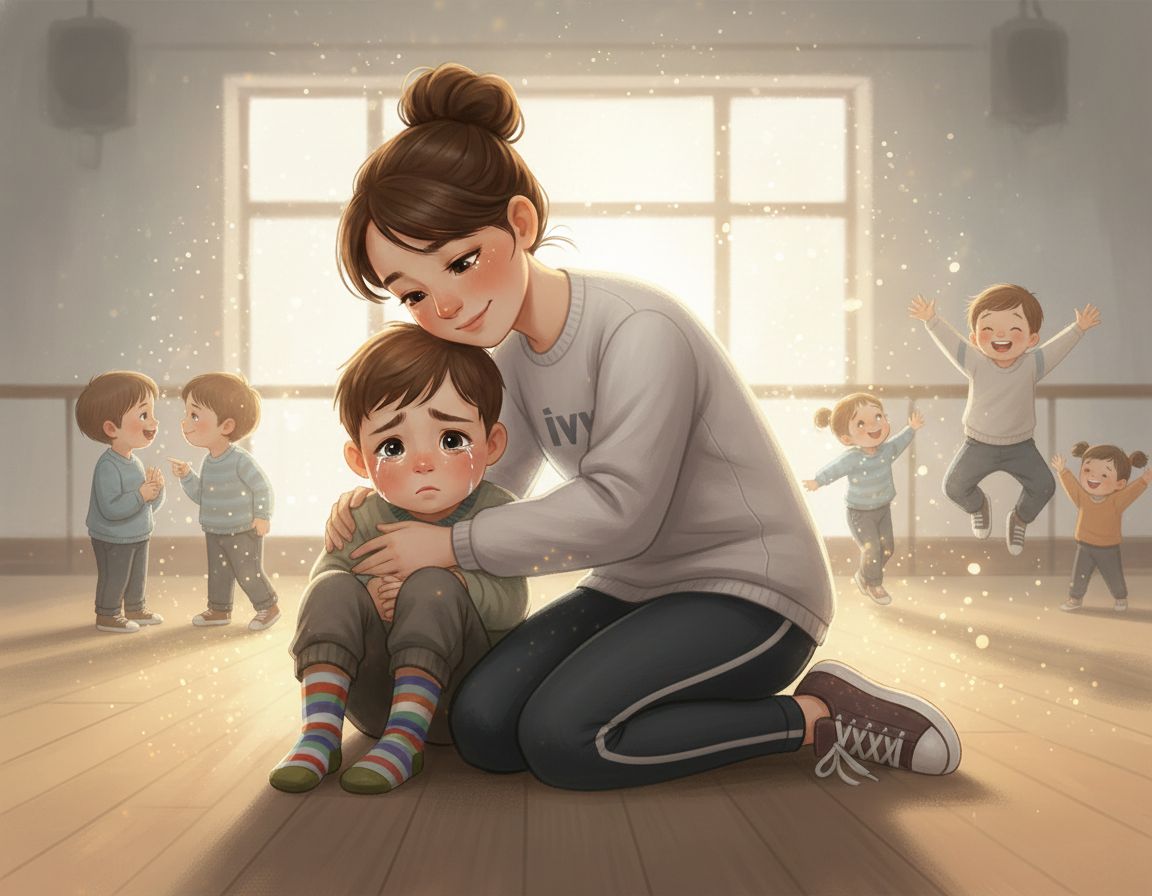 Trenérka Ívy na nic nečekala, vzala Poldíka do náruče a jemně mu palcem utřela slzičky. Pustila hudbu a začala tančit. S Poldíkem v náručí.