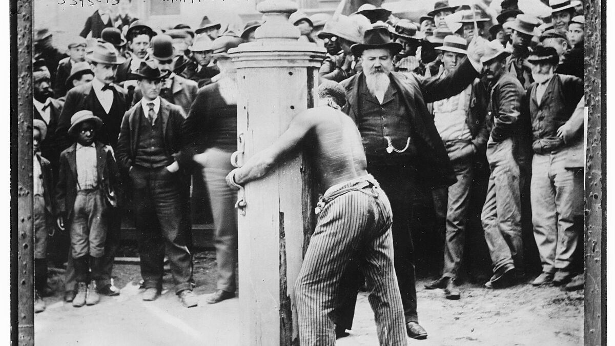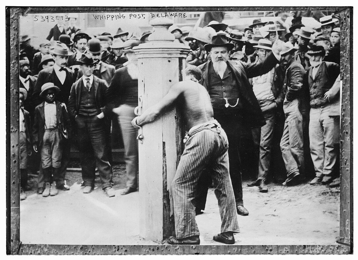 Veřejné bičování kolem roku 1900 ve státě Delaware.