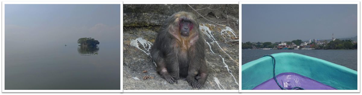 Kapitán s námi pak pokračoval na opičí ostrůvky. První byl s makaky. Ty zde v 70.letech vysadili vědci. Seděli na břehu na dosah ruky, vypadali spokojeně a vypaseně. Na druhém ostrově žili místní chápani. Opičí ostrovy byly poslední zastávka našeho jezerního výletu a kapitán nás vysadil v malém přístavu.