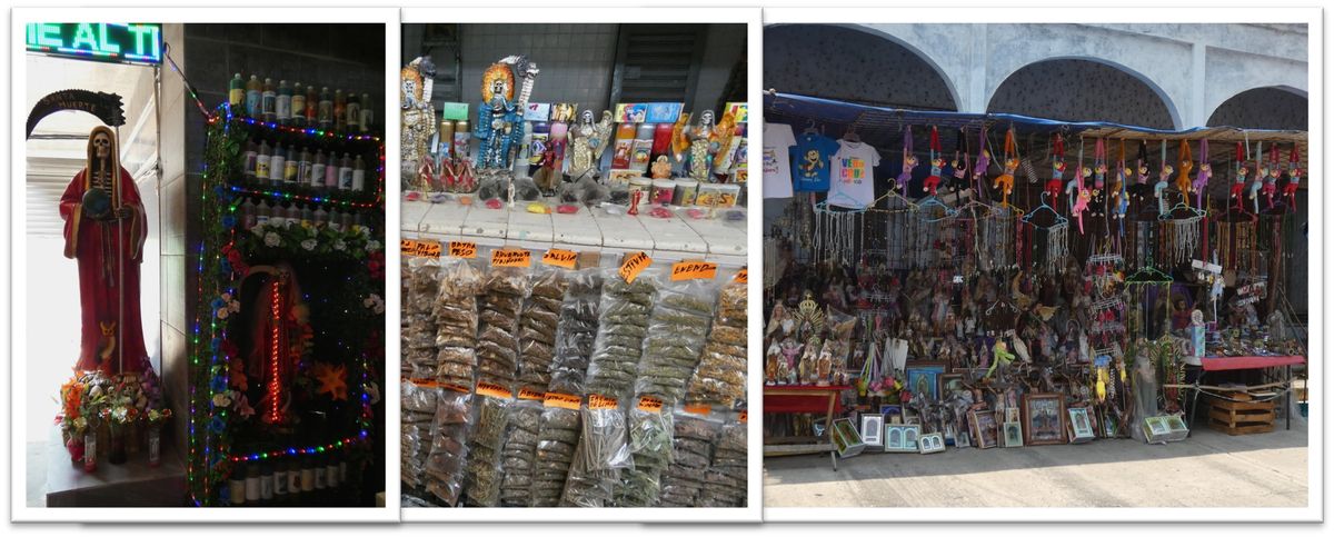 Městečko má samozřejmě mercado (tržnici) a zócalo (náměstí s kostelem). V kostele zrovna probíhal koncert, všichni tleskali do rytmu, někteří tančili, žilo to tam. Catemaco bylo až do počátku 20. století odříznuté od zbytku Mexika. Zřejmě také proto se zde vysoce rozvinulo přírodní léčitelství a magie nejrůznějšího druhu. Každý rok první pátek v březnu se zde koná obrovský čarodějnický festival. V tržnici jsme viděli několik stánků s předměty černé i bílé magie a pár „kanceláří“ vrchních čarodějů. Najdete tu léčivé vodičky, svíčky, bylinky, sušené hady, netopýry a velmi netradiční, děsivě ďábelské předměty. Při konzultaci s čarodějem můžete požádat o vyléčení jakékoli nemoci, získání milovaného člověka, odstranění obchodního soka, více peněz, nové auto… no co si vzpomenete.