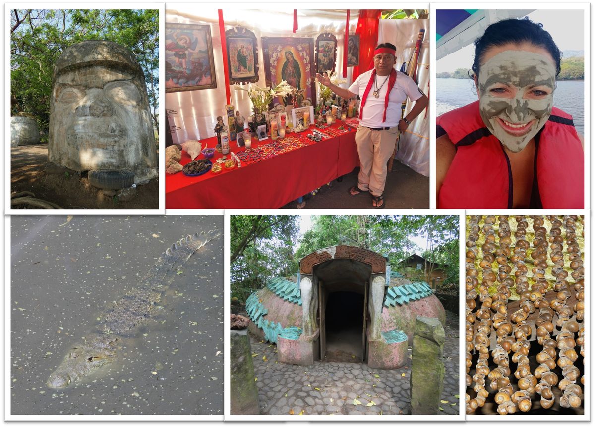 Pak následovala rezervace Nanciyaga, kde jsme po zaplacení vstupného obešli s průvodkyní kolečko džunglí. Měli tam repliky různých 2000 let starých soch a temazcaly (přírodní sauny, takové kamenné pece, kam dávali nahřáté kameny a vy jste se tam mohli řádně vypotit). Pot a bahno jste pak mohli jít smýt za poplatek do dalšího pramene. Průvodkyně nám dávala ze zázračného pramene ochutnat, byla to moc dobrá minerálka. Pyšně nám také ukazovala umělé ztrouchnivělé stromy, které byly použity jako kulisy ve filmu Šaman. Po sochách a saunách přišla zvířecí část. Zahlédli jsme červené ary, v oploceném jezírku se rochnili dva krokodýli a želvy. Ve drátěných klecích odpočívali leguáni. Jelikož jednoho máme doma, můžeme posoudit, že nebyli v úplně dobré kondici. Průvodkyně vůbec nechápala, že máme leguána a želvu doma. Pro mě toto byla taková slabší část. Těšila jsem se na přírodní rezervaci a místo toho jsme navštívili místo, kde bylo úplně všechno od soch přes stromy až po zvířata naaranžováno pro turisty.