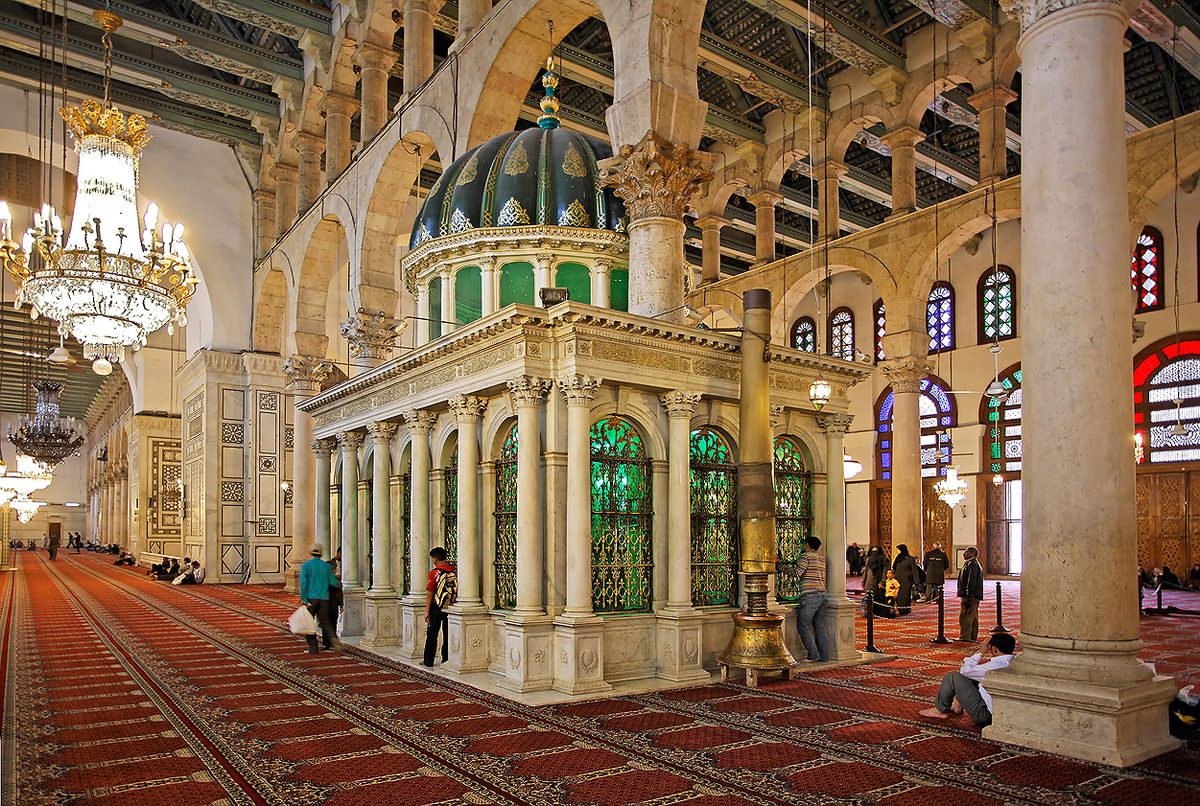 Chrám Jana Křtitele přímo uprostřed syrské mešity, unikát přestavěný z křesťanské baziliky. Údajně se tam nachází jeho lebka.