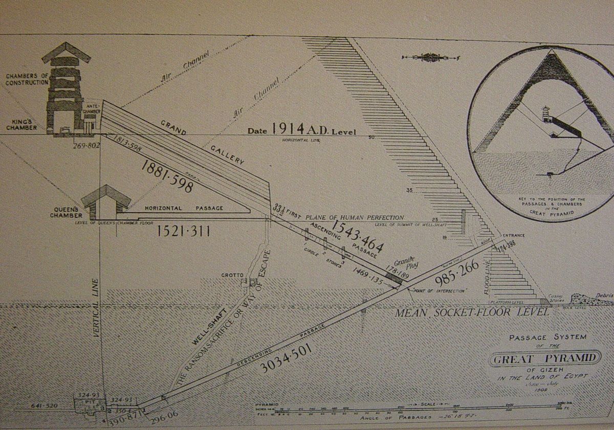 Když se vrátíme čtyři tisíce let zpět, zhruba do doby Abrahama, najdeme Velkou egyptskou pyramidu – předmět úžasu a údivu pro nejučenější vědce současnosti. Její konstrukce je v přesném souladu s nejpokročilejšími poznatky tohoto „věku mozku“ v matematice a astronomii. Učí s jistotou pravdám, které lze dnes odhadnout pouze přibližně pomocí moderních přístrojů. Její učení je tak pozoruhodné a jasné, že někteří z předních astronomů světa bez váhání prohlásili, že má božský původ. A i kdyby naši evolucionisté „věku mozku“ připustili, že má božské uspořádání a že její moudrost je nadlidská, musí stále připustit, že je lidské konstrukce. A skutečnost, že v té dávné době měla jakákoli skupina lidí mentální schopnost vypracovat takové božské uspořádání, jakého by dnes bylo schopno jen velmi málo lidí s modelem před sebou a se všemi moderními vědeckými přístroji k dispozici, dokazuje, že náš „věk mozku“ rozvíjí více domýšlivosti, než k čemu okolnosti a fakta opravňují.