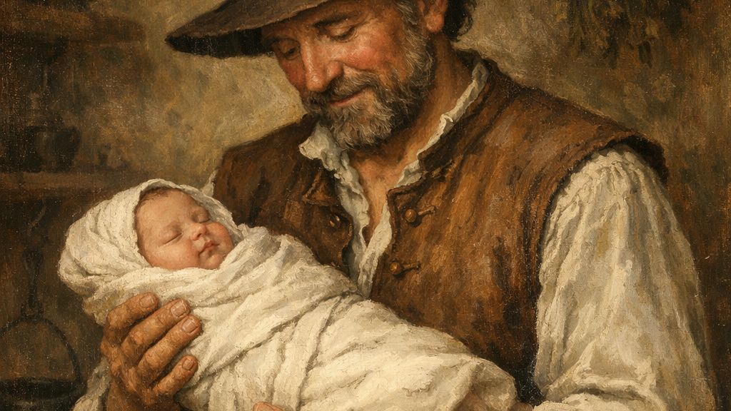 Když Mikoláš zaslechl dětský pláč, tělo mu povolilo úlevou. Vešel dovnitř. Uviděl svou ženu, vyčerpanou, ale živou, a v její náručí malou, svraštělou bytůstku zabalenou do čistého plátna.