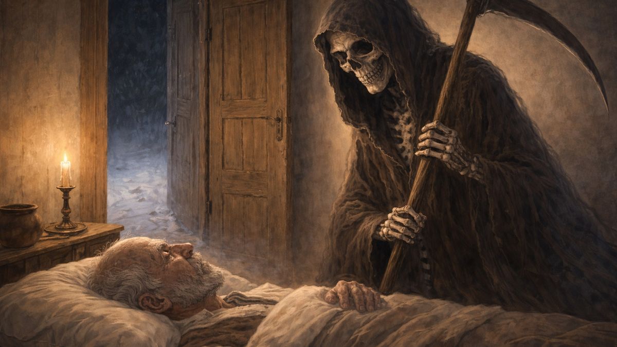 Muž, který naposledy vydechl v domě, kde prožil celý život. Ticho, které nebylo děsivé, jen konečné. A pak lehkost — jako když po dlouhé zimě roztaje sníh.