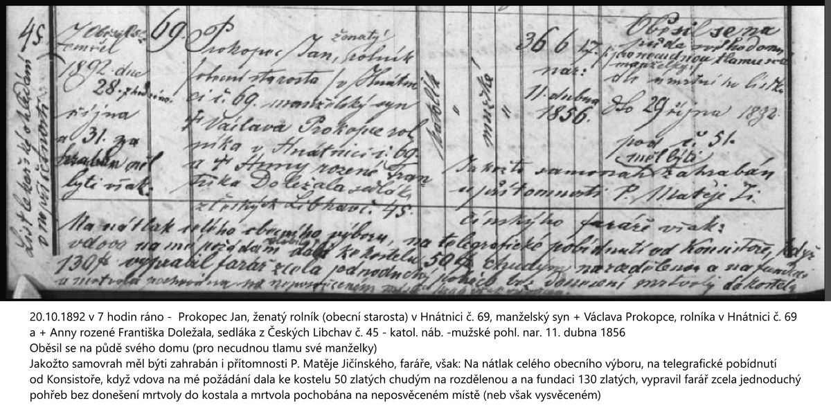 Tak byl pochován Jan Prokopec. Ne jako hrdina, ale jako člověk, který podlehl tíze života. Jeho příběh zůstal sevřen v několika řádcích matriky – svědectví o neštěstí, které překonalo hranice jedné usedlosti, o síle komunity, jež se vzepřela dogmatu, a o věčné lidské snaze najít slitování i tam, kde ho pravidla zapovídají.