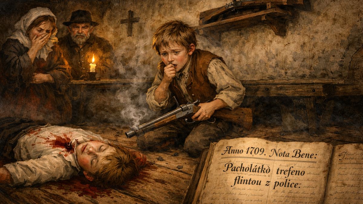 V matrikách většinou nacházíme jen suchá data – narozen, oddán, zemřel. Občas se ale mezi řádky psanými švabachem objeví příběh, který i po třech staletích vystoupí z papíru s nečekanou intenzitou. Jeden takový zápis pochází z ledna roku 1709. Je to příběh o neopatrnosti, dětské hře a jedné ráně, která se nikdy neměla ozvat.