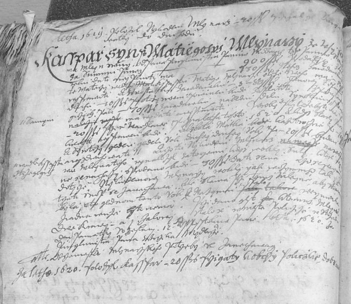 Po otci zůstal také dluh 20 kop grošů, které měly být vyplaceny jistému Janovi. Příjmení v zápisu chybí, a tak se nabízí domněnka, že mohlo jít o člena rodiny – snad Matějova bratra, tedy Kašparova strýce. Pokud by tomu tak skutečně bylo, opět by to posilovalo předpoklad, že Matěj byl synem rychtáře Jana, jehož prvorozený syn nesl stejné jméno.