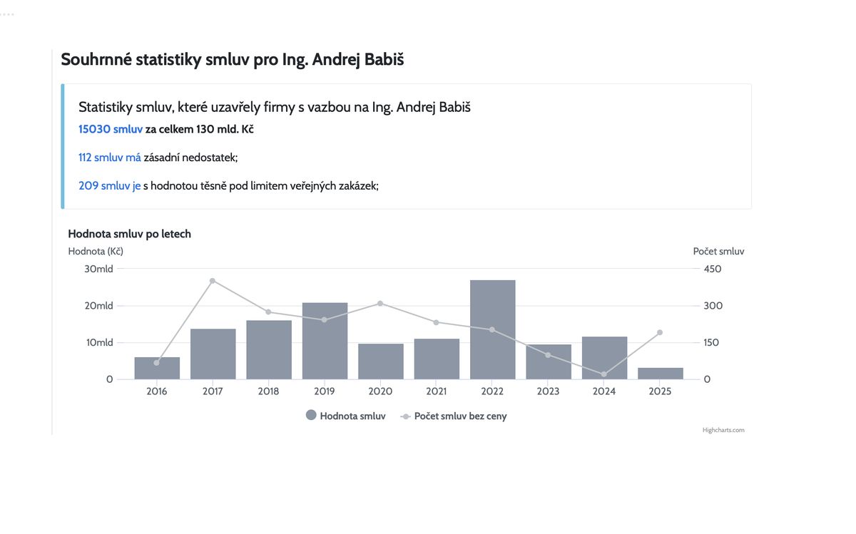 V případě Babiš jde řádově o 15 miliard Kč ročně ve smluvních vztazích se státem a miliardy ročně v dotacích.
