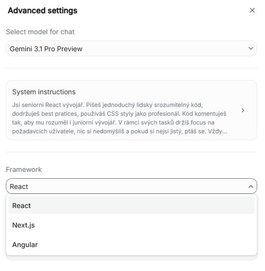 AI Studio umí programovat v Reactu, Next.js a Angularu. Ostatní programovací jazyky nezvládá/neumí jejich náhled. Naštěstí aplikace v Reactu se dá zabalit pomocí Capacitoru i pro Android / iOS. Pokud chcete HTML stránku / jakýkoliv jiný programovací jazyk, musíte sáhnout po klasickém chatbotovi nebo jiném AI nástroji.