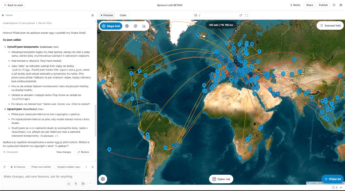 V současnosti mám rozdělanou aplikaci pro detailní počítání navštívených zemí a plánování cest. Má provizorní název Všudybyl. Jelikož se jedná také o aplikaci napsanou AI v Reactu, má i svou webovou verzi. Pokud byste se rádi stali jejím testerem, kontaktuj mě.