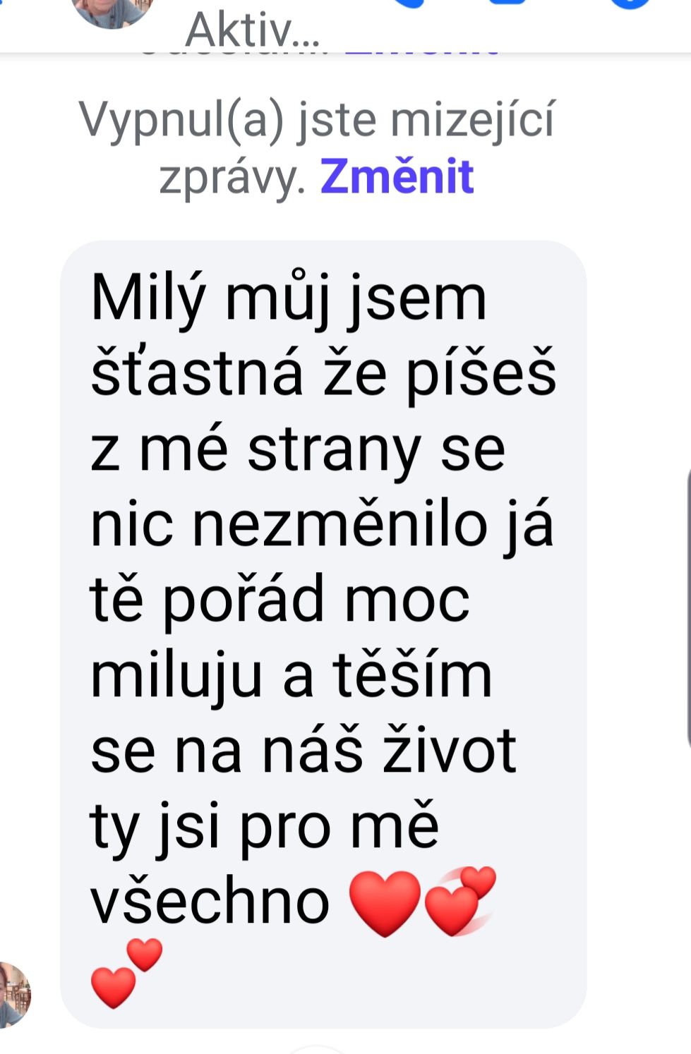 Přesto jsem odhodlán trpělivě čekat na zázrak. Nedočkal jsem se. Nakonec jsem to vzdal a napsal jí: „To ti nestojím ani za odpověď?“ Zprávu si přečetla a opět nic. Nestojím jí za vysvětlení, tak ona mi nestojí za vztah, řekl jsem si a sdělil jí, ať pozdravuje pana F. se kterým trochu koketovala v průběhu naší „nehynoucí lásky“. „Sbohem“.