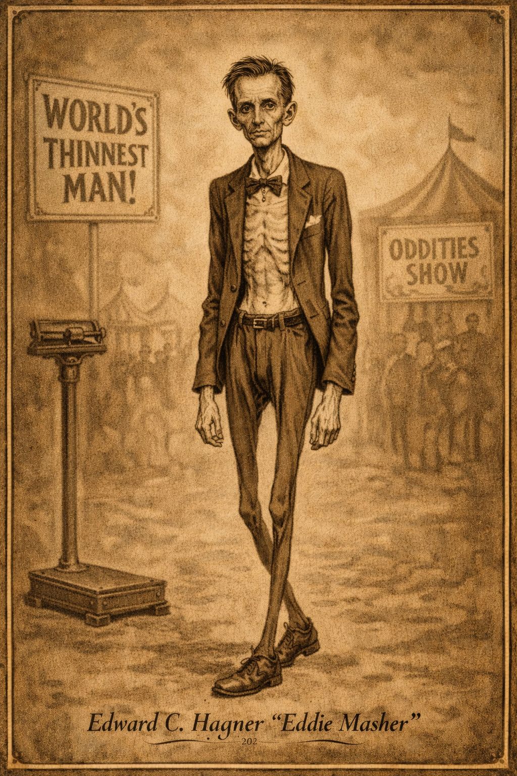 Edward C. Hagner, známý také jako Eddie Masher, se stal historicky známým jako jeden z nejhubenějších mužů světa. Přestože přesné datum jeho narození není dodnes potvrzeno, je zřejmé, že žil ve 20. století a jeho život byl silně ovlivněn extrémní štíhlostí. Při výšce zhruba 170 centimetrů vážil jako dospělý pouhých 22 kilogramů, což je hodnota hluboko pod zdravou hranicí a z dnešního pohledu by byla považována za život ohrožující. Edwardova neobvyklá tělesná stavba přitahovala pozornost veřejnosti a stala se zdrojem jeho kariéry i notoriety.