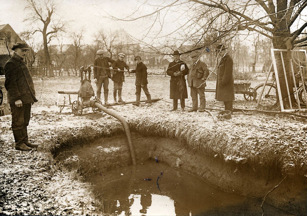 Vypouštění jámy, kde byly nalezeny ostatky obětí