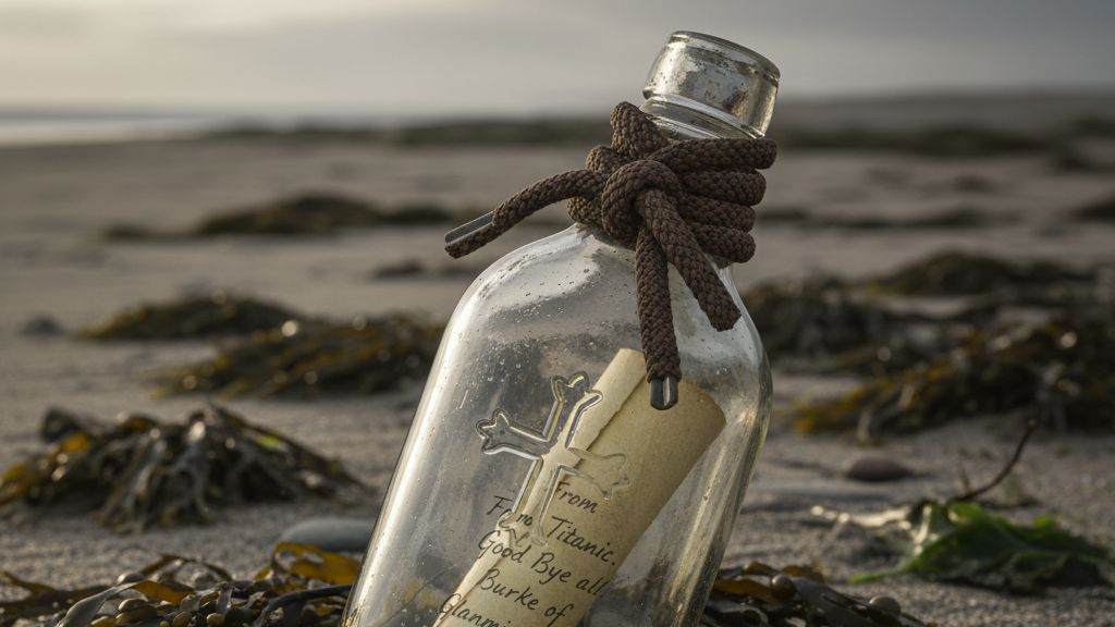 Osudová cesta láhve od svěcené vody skončila přesně tam, kde začala. Malá skleněná schránka, vydaná napospas Atlantiku, se vyplavila přesně rok po potopení Titanicu na břeh v Dunkettle, pouhých pár mil od rodinné farmy Burkových, poblíž White’s Cross v hrabství Cork. Láhev nalezl kočí, který ji předal rodině. Stačil jediný pohled. Okamžitě poznali láhev, i rukopis nejmladšího syna.