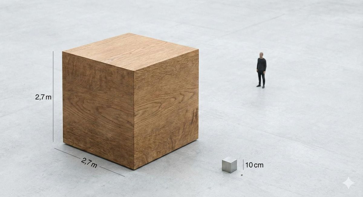 - Větší krychle ukazuje rychlost dnešní lidské produkce CO₂, když pálíme právě ty uhlíkové zásoby, které se v karbonu hromadily desítky milionů let – a přesto podle dnešních ministrů či “zmocněnců pro klimatickou krizi” prý nemají na klima vliv.